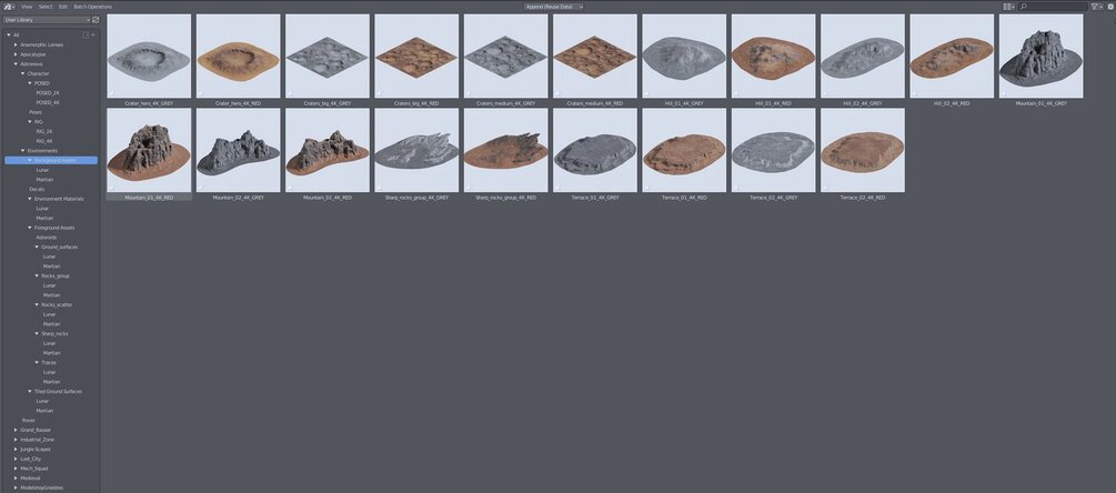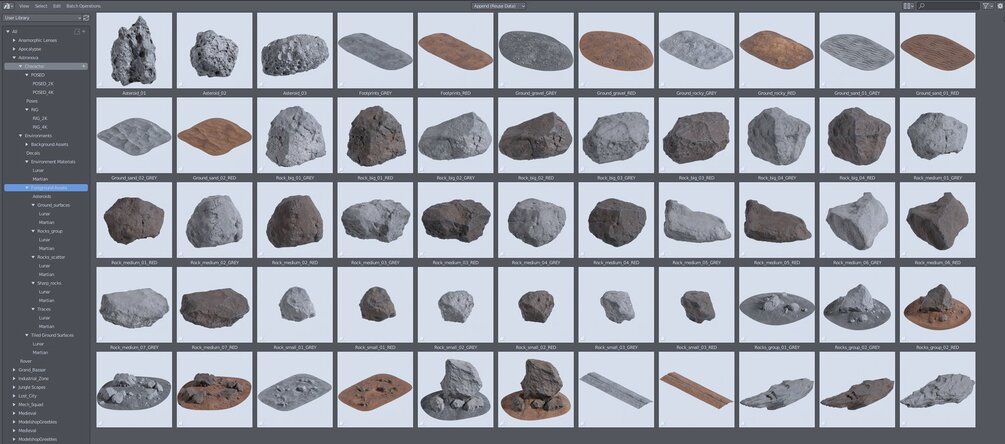 This bundle includes 130+ items: A Fully Rigged HERO astronaut (Provided with 30 Preset Poses and 8 color variations), 80 Unique Assets which are massive Cliffs, Rocks, Craters, Asteroids, Scatter Stones, Lunar and Martian color schemes, 10 UDIM-Supported assets, 12 Tiled Textures with displacements, 12 Tiled Geometry-based surfaces, and 2 Footprint Decals, HERO Rover Companion, UE 5.1 native project files. C4D native files with Octane Render optimization. Formats: Blend 3.2+ only, OBJ, FBX, C4D, Unreal Project 5.1+
