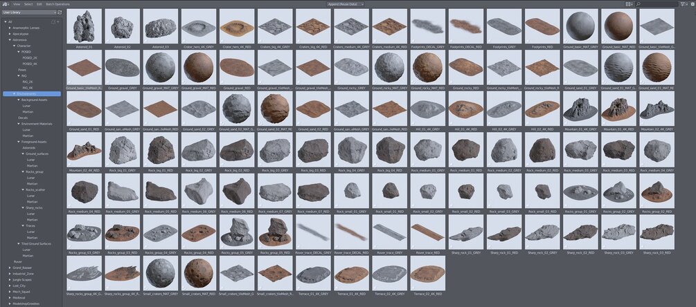 This bundle includes 130+ items: A Fully Rigged HERO astronaut (Provided with 30 Preset Poses and 8 color variations), 80 Unique Assets which are massive Cliffs, Rocks, Craters, Asteroids, Scatter Stones, Lunar and Martian color schemes, 10 UDIM-Supported assets, 12 Tiled Textures with displacements, 12 Tiled Geometry-based surfaces, and 2 Footprint Decals, HERO Rover Companion, UE 5.1 native project files. C4D native files with Octane Render optimization. Formats: Blend 3.2+ only, OBJ, FBX, C4D, Unreal Project 5.1+